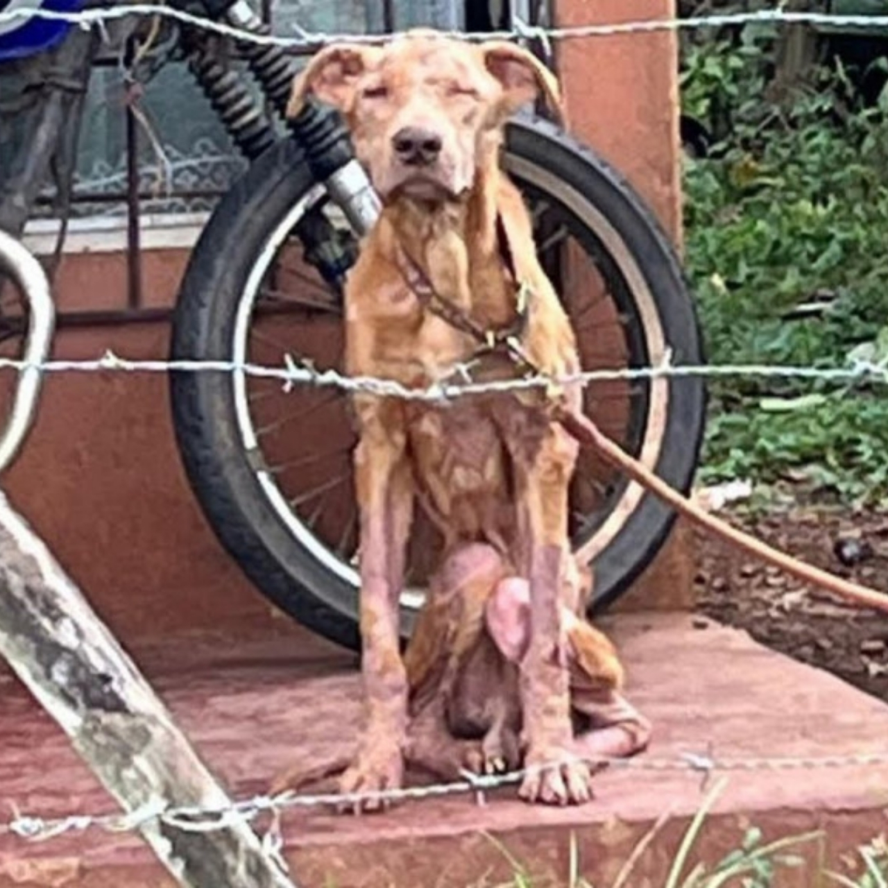 His emaciated body revealed bones sharply outlined under a mange-ridden coat—symptoms of severe neglect.