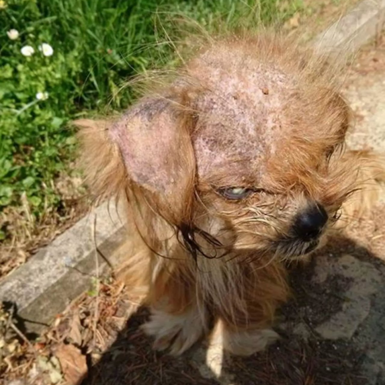 In May of last year, Frodo was found in a shocking state, suffering from mange, fleas, ticks, and an untreated eye infection.