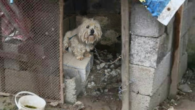 When rescuers first found Ihsan, his world was confined to a dark, filthy corner—a prison made of rusted chains and neglect. His fur was so thickly matted that it covered his eyes, tangling into clumps of dirt and old hair that had fused together over time. Beneath the mess was a small dog who had known nothing but isolation and hardship. Ihsan had been kept solely for breeding, used and forgotten, living each day in silence and fear. There were no walks, no soft touches, no moments of warmth—only the sound of his own chains and the endless weight of loneliness. Yet somehow, deep inside that suffering, a faint spark of life still flickered. It was that spark that the rescuers saw when they came for him.