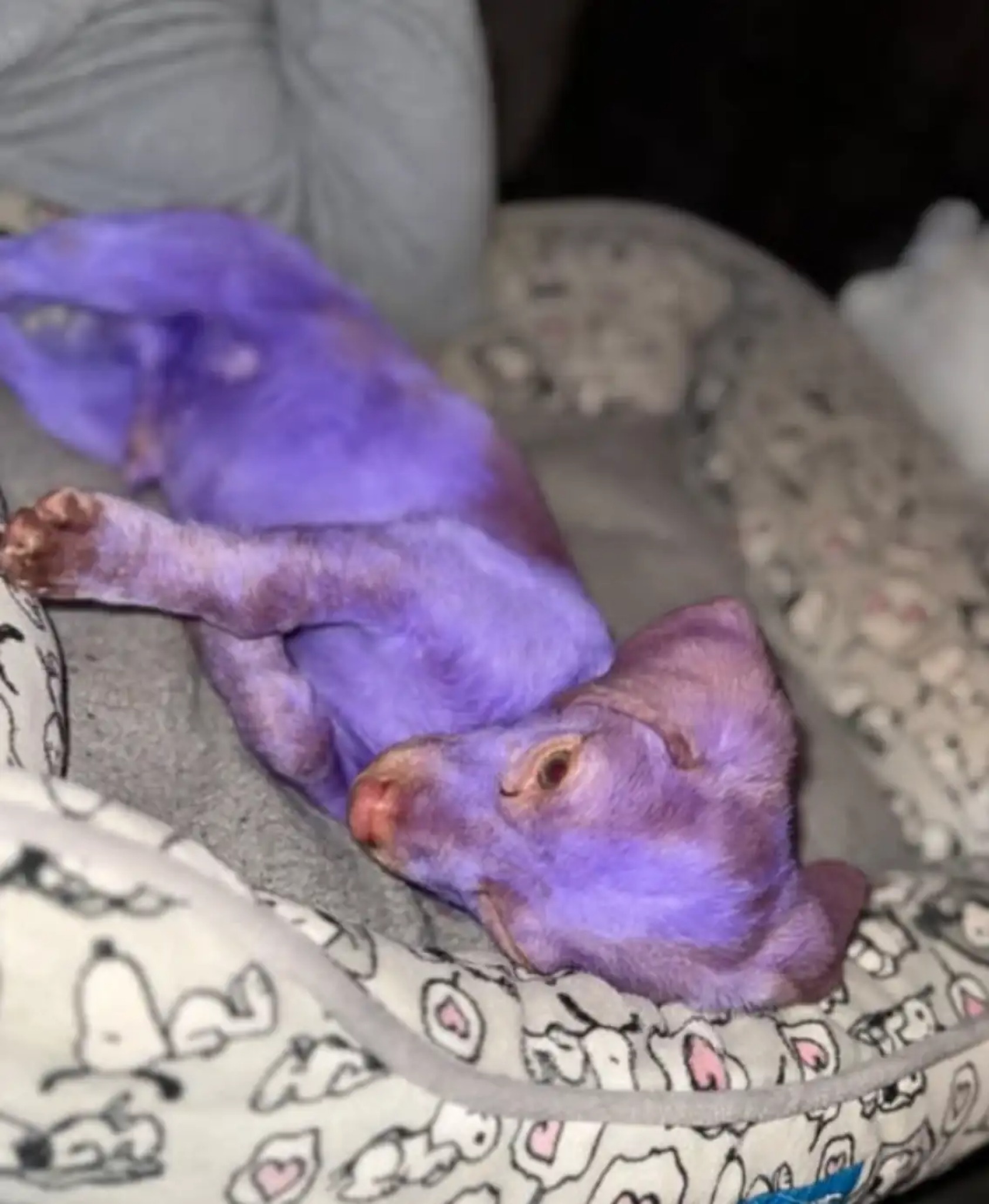 Bright purple covered his tiny body, thick and wrong, like something heavy he never chose.